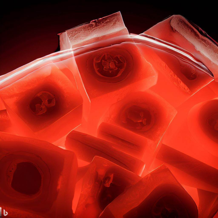 Generate an image of a fictional British food called "Tteokbokki Jelly". This is an imaginative dish that combines the flavors of Korean cuisine with the textures of traditional British jelly. It is a jelly made with tteokbokki sauce and sliced tteokbokki cakes mixed in. The jelly should have a translucent, gelatinous texture with a red-orange hue, and the tteokbokki cake slices should be visible inside. The overall presentation should be appetizing and visually interesting, showcasing a fusion of cultures that is both intriguing and innovative.